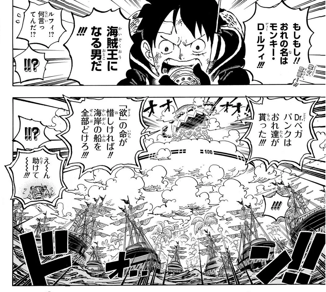 エッグヘッドを取り過去む海軍の船をどける為に、ルフィは堂々と宣言したのですがそうは問屋が卸さないですよね。