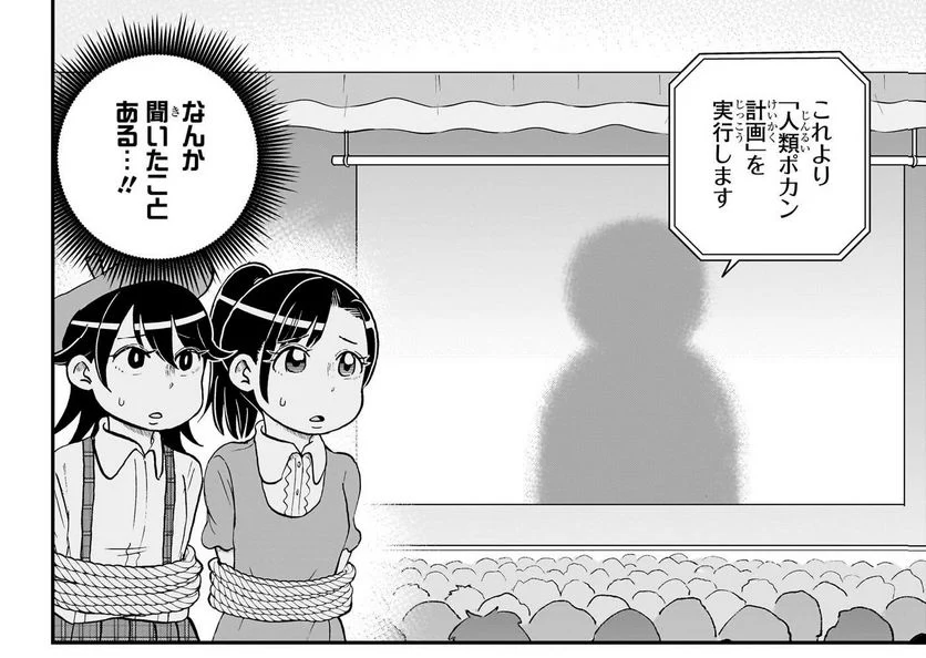 スクリーンに投影されたシルエットが行おうとしてるのは、「人類補完計画」と響きが良く似た「人類ポカン計画」でした。